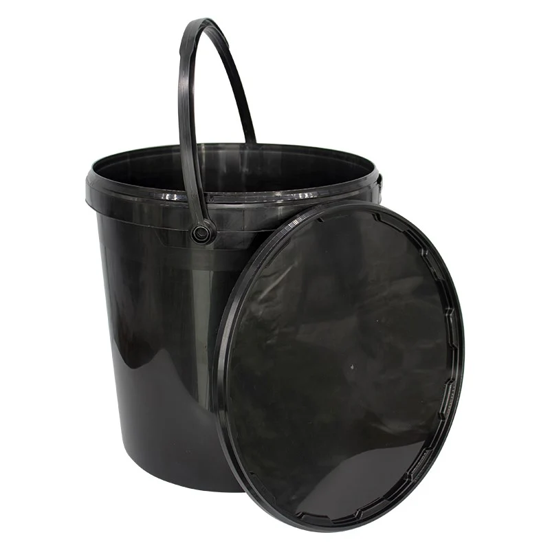 En robust, mångsidig plast hink med lock och bärhandtag – perfekt för hydroponik, lagring eller blandning av vätskor och material.